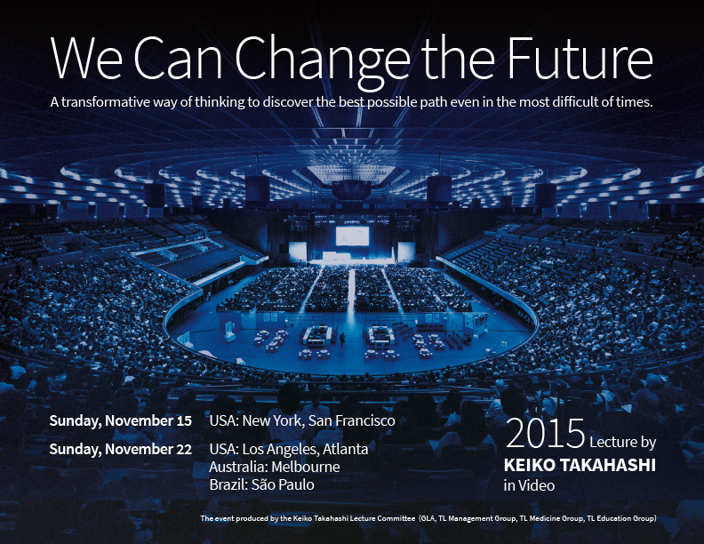 Note: Event produced by Keiko Takahashi Lecture Committee: GLA, TL Management Group, TL Medicine Group, TL Education Group Schedule of dates and locations of the 2015 Lecture by Keiko Takahashi. (English translation will be available in the venues shown in bold letters.)